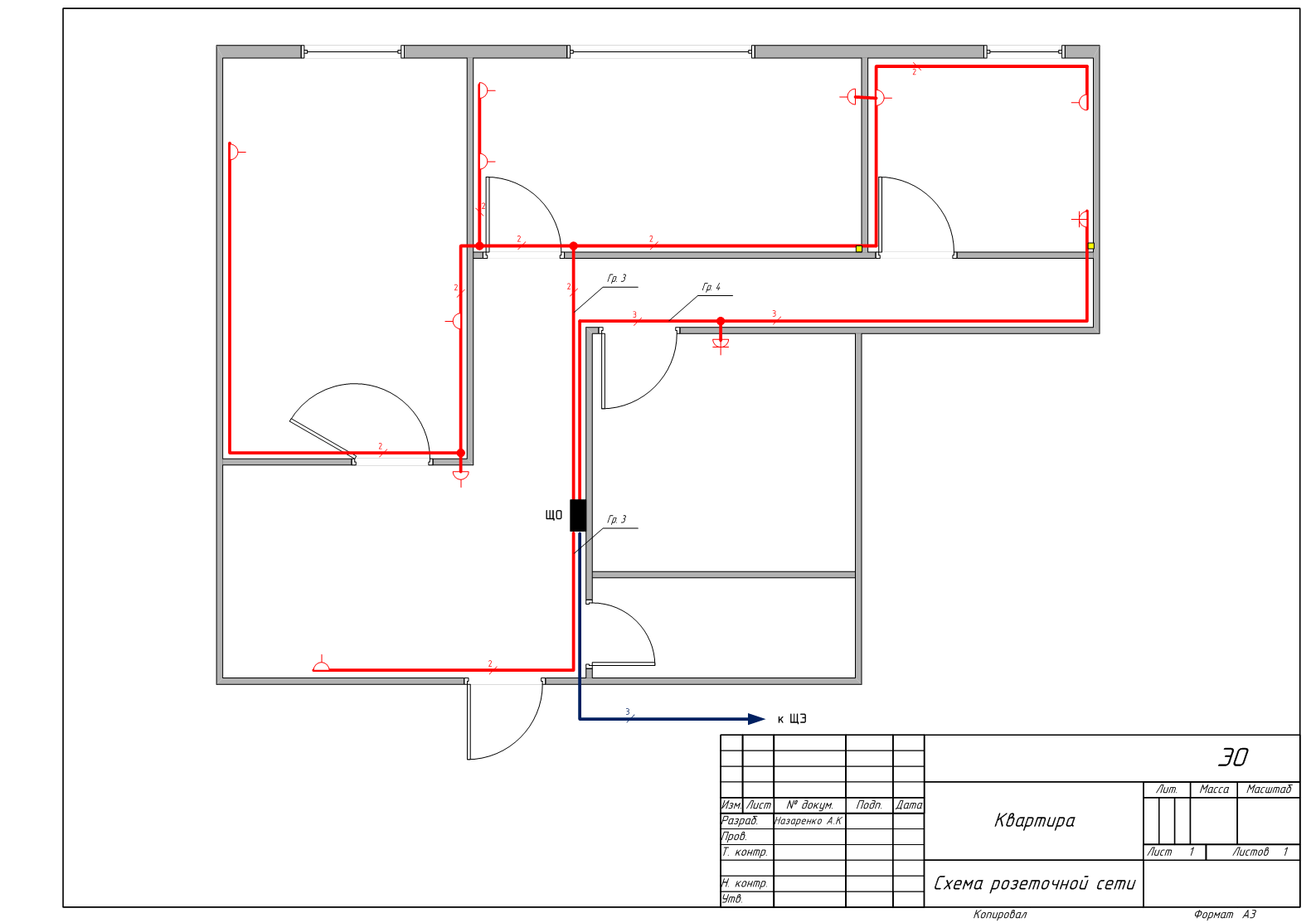 На завершающем этапе наносим необходимые надписи и заполняем графы основной надписи. Всего за несколько минут получаем готовый план розеточной сети: