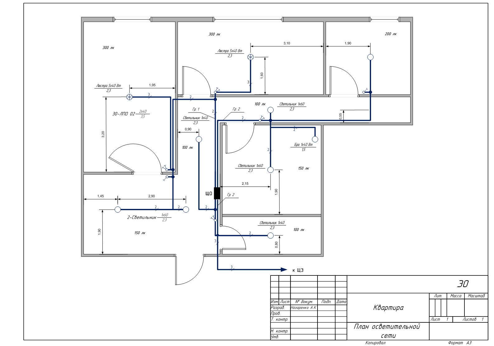 Схема осветительной сети